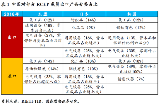 在上述贸易关系和产品结构基础上,RCEP对于区域内90%商品零关税的设定,贸易影响几何?我们认为核心边际增量集中在日本,以及东盟、韩国的少数商品。