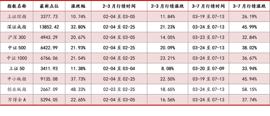 2020年沪深指数实现普涨,总体震荡上行、局部显著性趋势上行。2020年,沪深指数先后经历了2月“宅家”行情与3月中下旬-7月复苏性反弹。在两次行情的影响下,2020年沪深主要指数整体呈现不同程度的涨幅(详情见表1),表现出明显的结构性特征,即上证综指、沪深300、中证500等周期或蓝筹占主导指数涨幅,逊于医药生物、TMT类、可选消费为主导的深证成指、创业板指以及中小板指。