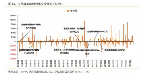 进一步,我们分别考虑逆回购、MLF与TMLF、降准三类近年来央行较常运用的货币政策工具的投放或净投放情况。
