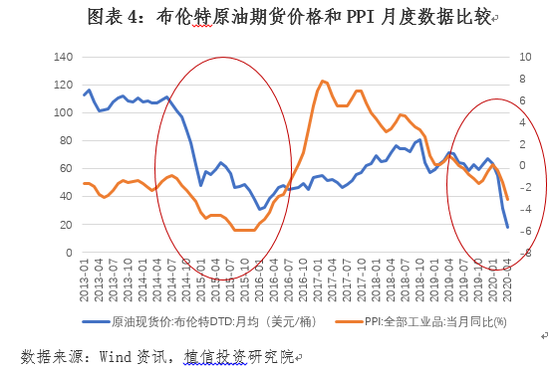 图1是PPI和布伦特原油现货价格走势的比较,当油价出现显著下跌的情况下,PPI则大概率出现负值。
