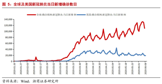 二季度短端流动性出现由松到紧变化的主要原因在于海外疫情尤其是美国疫情形势逐渐明朗,我国经济数据出现环比改善。一方面,美国疫情每日新增确诊数目自4月初突破3万例后,持续处于高位震荡状态,但波动有降,6月9日的当日确诊数目已经降至1.9万人。另一方面,我国消费、投资数据自2月触底后,3、4月维持向上修复,PMI也已经连续3个月位于50%荣枯线上方,受出口抗疫物资的拉动,我国出口维持强劲,3、4、5月贸易顺差持续扩大,超市场预期,动力煤价格、螺纹钢价格、发电耗煤及高炉开工率等高频数据均有明显反弹,显示复工复产进程较快。