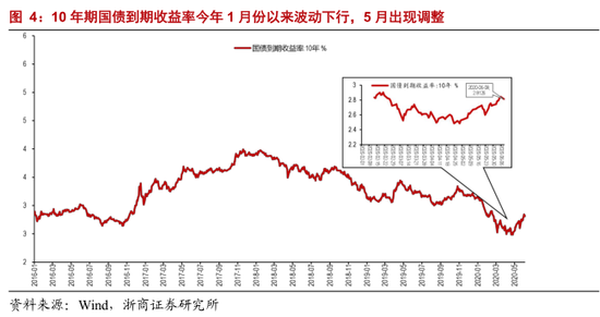 受政府债券发行量大增、经济基本面数据确定性反弹及央行收紧短端流动性综合影响,5月以来10年期国债收益率出现较大幅度调整,截至6月8日,已经由4月29日的本轮低点2.4851%上行至2.8126%,调整幅度近33BP。