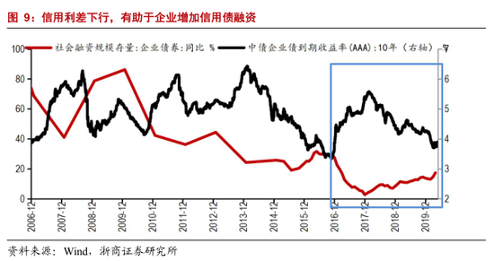 就业为今年最重要的政策底线,若失业率阶段性上行,仍会触发央行宽松操作,预计在7、8月失业率阶段性承压期,央行将放松短端流动性调控,并可能有降息操作。同时,三、四季度经济增速恢复至合理区间,也需要扩信用的配合,货币政策维持流动性的宽松有助于扩信用。从社融的角度,扩信用除表内信贷外,企业债及政府债均是主要发力点,此时维持短端流动性及利率低位,有助于传导至广谱利率,不仅将增加实体经济的信贷需求,在不出现大规模违约潮的情况下,信用债收益率也将同步下行,有利于增加企业债券融资,实际上,2-4月疫情冲击下,社融中企业债券融资分别新增3894、9819和9015亿元,同比分别多增3019、6272和5066亿元,主要就是受益于信用债利率的下行。