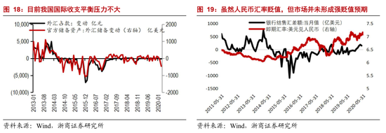 再看国际收支平衡,在我国经济基本面大幅改善及美联储将长期维持零利率的背景下,明年国际收支压力不大。我们一般用外汇储备及外汇占款波动来观测国际收支状况,在汇率贬值压力较大的2016年初及2016年四季度至2017年,我国资本流出压力加大,外汇储备和外汇占款均出现了大幅负增长,2017年初外储曾突破3万亿美元关口,这两个阶段,央行货币政策均以国际收支平衡作为首要目标,尤其是在2016年1月,央行行长助理张晓慧作出预期引导称:“现阶段人行管理流动性的时候,亦要高度关注人民币汇率的稳定,因此不轻易实施降准”,表达了明确的政策意图。但明年国际收支较难出现大幅失衡风险:首先,我国经济基本面修复领先全球其他主要经济体,尤其是明年一季度经济大幅反弹至10%以上的概率大,即使在全球经济“比好逻辑”下,我国仍然有明显优势;其次,预计美联储将长期维持零利率,而我国货币政策远未及零利率下限,其他政策工具也有充足空间,人民币汇率不具备贬值基础。随着我国对外开放改革深化,资本也有望加大流入,总体看,国际收支平衡压力不大。