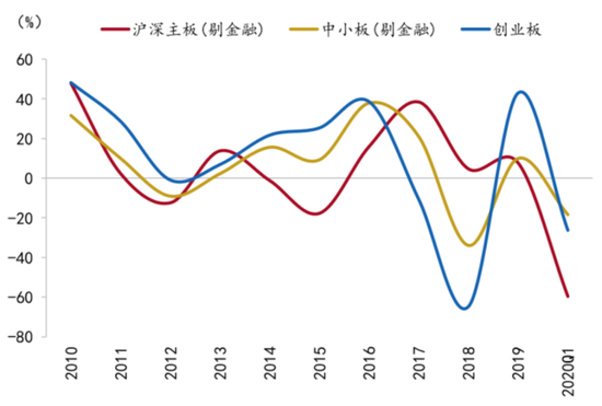 虽然A股与美股脱钩可能性不大, 但随着中国资本市场广度与深度的完善、上市公司盈利周期与美股逐步错开,A股的韧性料更强,即跌幅将小于美股。一方面,我国资本市场改革持续推进,创业板注册制、新三板改革将拓宽市场广度、丰富市场层次,并购重组、再融资政策的放松将加大对科技、创新型企业的直接融资支持力度;另一方面,疫情冲击之下虽然A股与美股盈利均有所下行,但A股盈利增速跌幅好于美股。随着我国疫情得到控制,企业复工复产进程持续,未来A股与美股盈利周期有望错开,并且考虑前文提到美国上市公司高杠杆风险,A股上市公司在盈利能力方面上则具备相对优势。